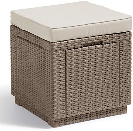 Allibert van Keter ” Kubuskruk met opbergruimte, cappuccino, incl. kussen, afneembaar deksel, platte rotanlook, weerbestendig, 42x42x39cm