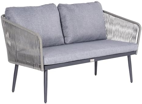ESTEXO Tuinbank, zitbank, touw-look, balkonbank, tuinmeubelen, 2-zits, outdoor, roep, grijs