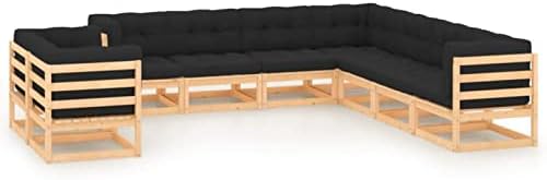 Homgoday Tuinmeubelset, 9-delig, antraciet, massief hout, grenen, tuinmeubelen, ligstoelen, tuinmeubelen, terrasmeubels